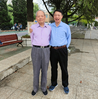 图4 著名国际矿物学家中国地质大学创始教师彭志忠先生(左)和吴信才教授