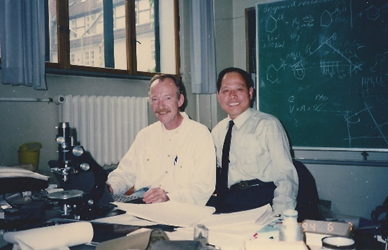 图9 左:我与丹麦哥本哈根大学Hansen教授在广东野外调查取样(1989年1月),右:我访问哥本哈根大学,在Hansen教授办公室合影(1994年4月)