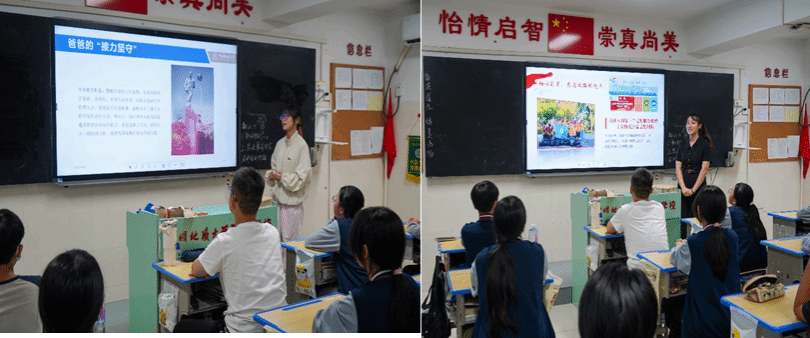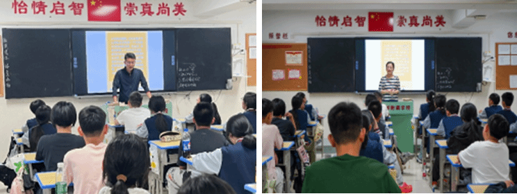 榜样分享环节,珠宝学院大四学生党员吴传莹以“传承地质荣光,绽放青春梦想”为题,分享了从专业学习到野外实践的成长历程;研二学生党员张楚婷围绕“团心向党,青春闪耀”,讲述了从志愿服务到思想成长的蜕变故事。两位学生党员以同龄人的视角,为中学生们展现了可学可做的成长路径。