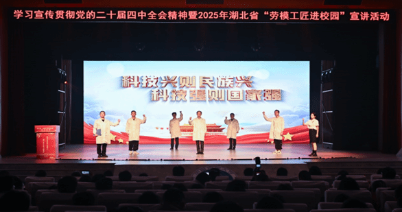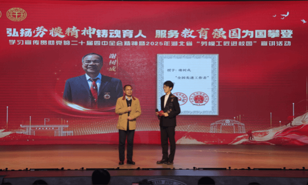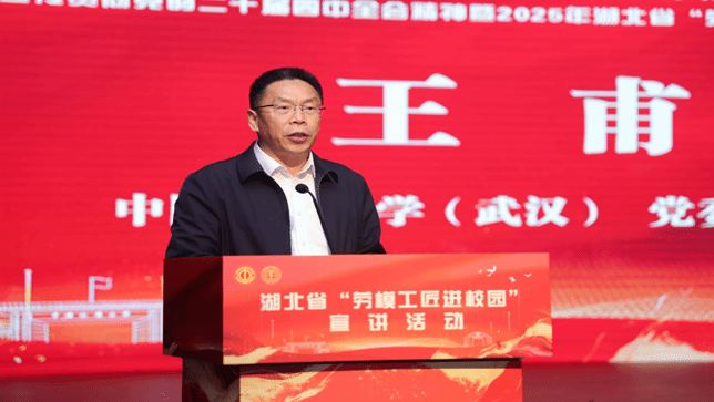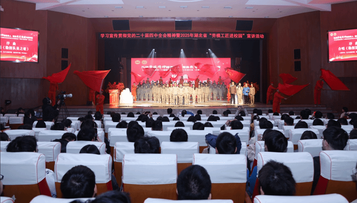 11月27日,由湖北省总工会主办,湖北省教科文卫体工会承办,我校协办的“弘扬劳模精神铸魂育人 服务教育强国为国攀登”学习宣传贯彻党的二十届四中全会精神暨2025年湖北省“劳模工匠进校园”宣讲活动在南望山校区西区弘毅堂举办,活动线上线下同步进行。校关工委主任、党委副书记王甫及七百余名师生参加活动。
