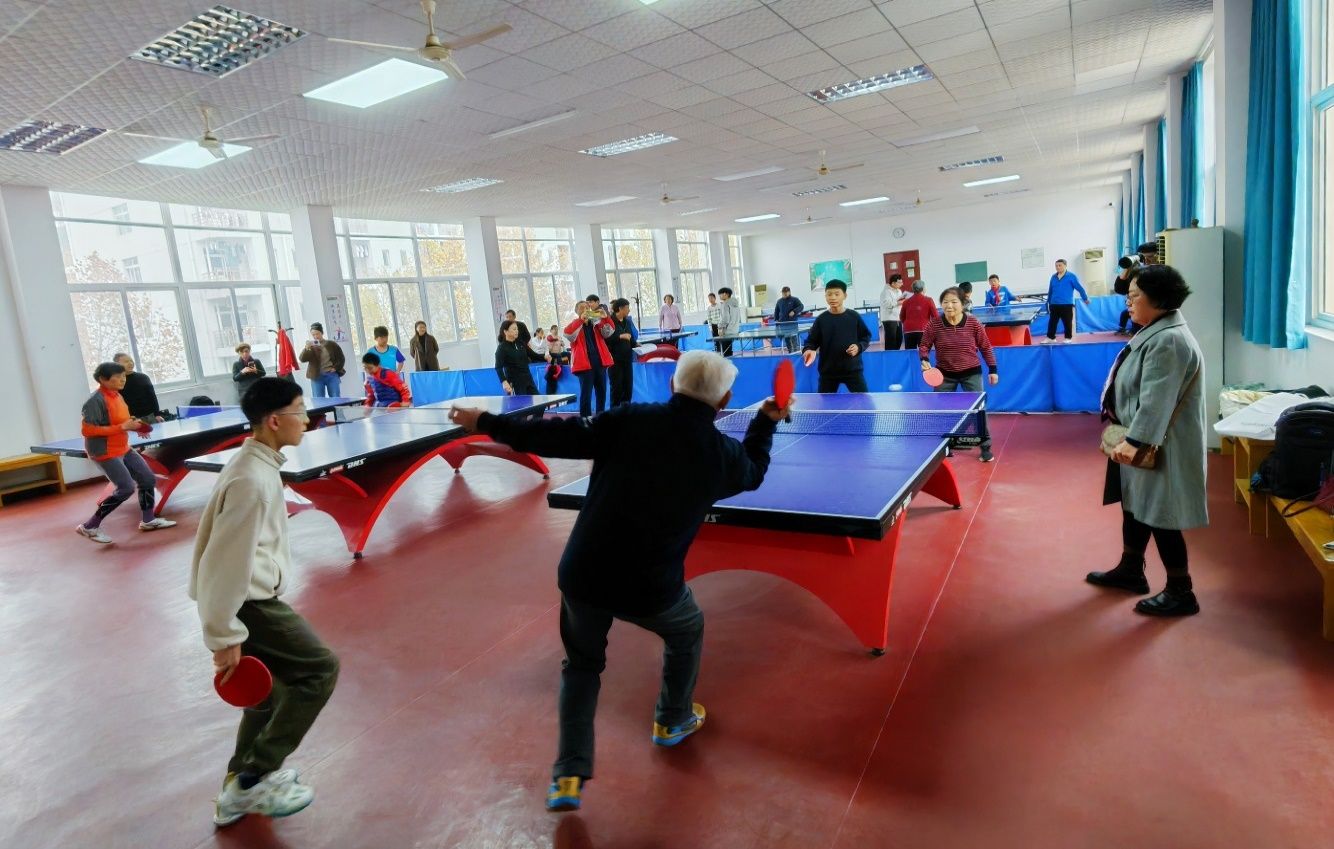 赛场上,老少选手精神饱满、默契配合。老党员们沉着稳健、经验丰富,在一招一式中展现历久弥坚的师者风范;青少年们反应敏捷、敢于拼搏,在攻防之间洋溢朝气与活力。银球飞舞,喝彩不断,“友谊第一、比赛第二”的氛围贯穿始终。三代地大人以球会友,不仅切磋了球技,更在互动中深化情感共鸣,使“艰苦朴素、求真务实”的校训精神与“五通融合”育人理念在体育交流中自然传承。